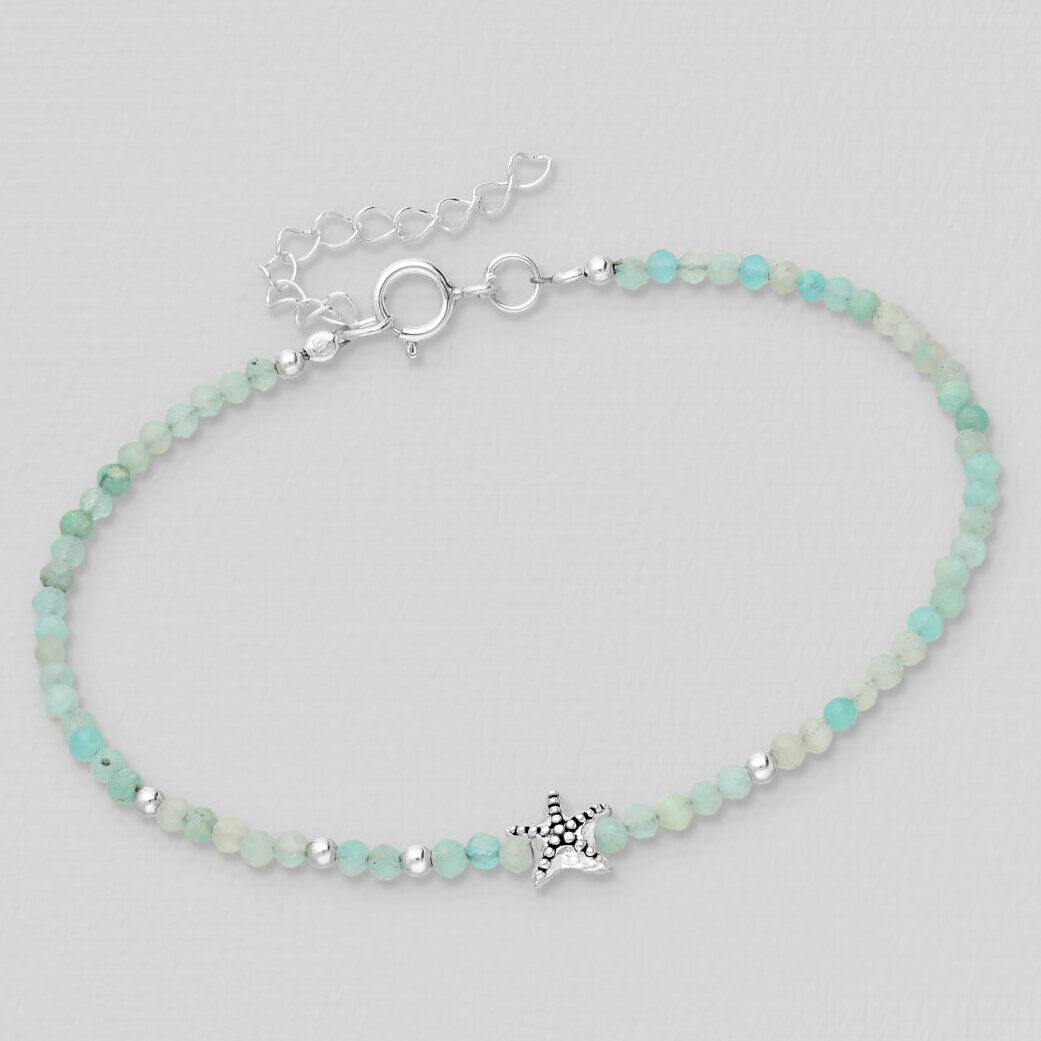 Srebrna narukvica morska zvijezda sa perlicama srebra i Amazonita