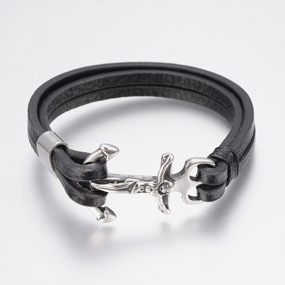 Narukvica čelik i koža sa sidrom i križem