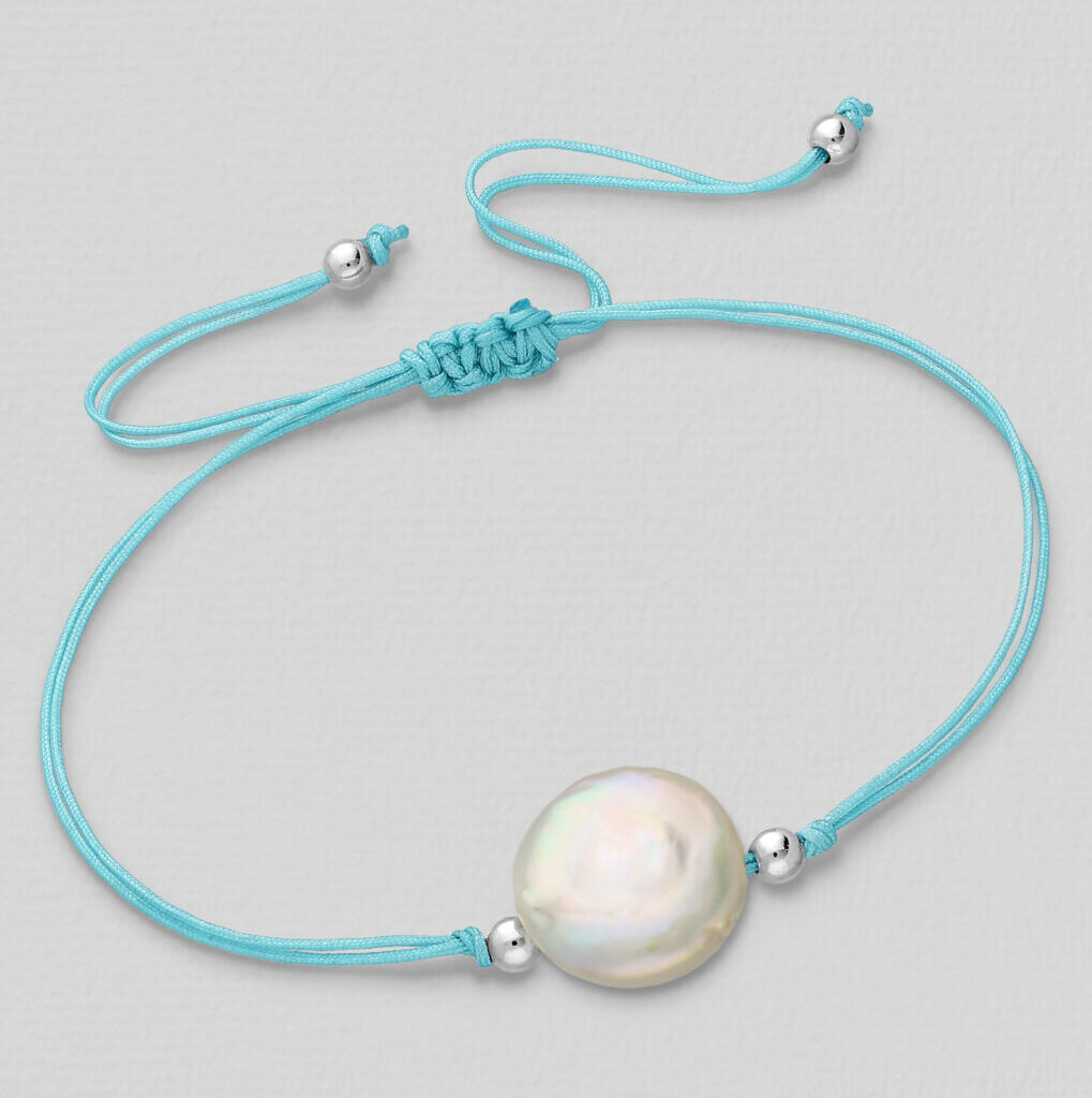 Narukvica konac sa perlicama srebra i slatkovodnim biserom