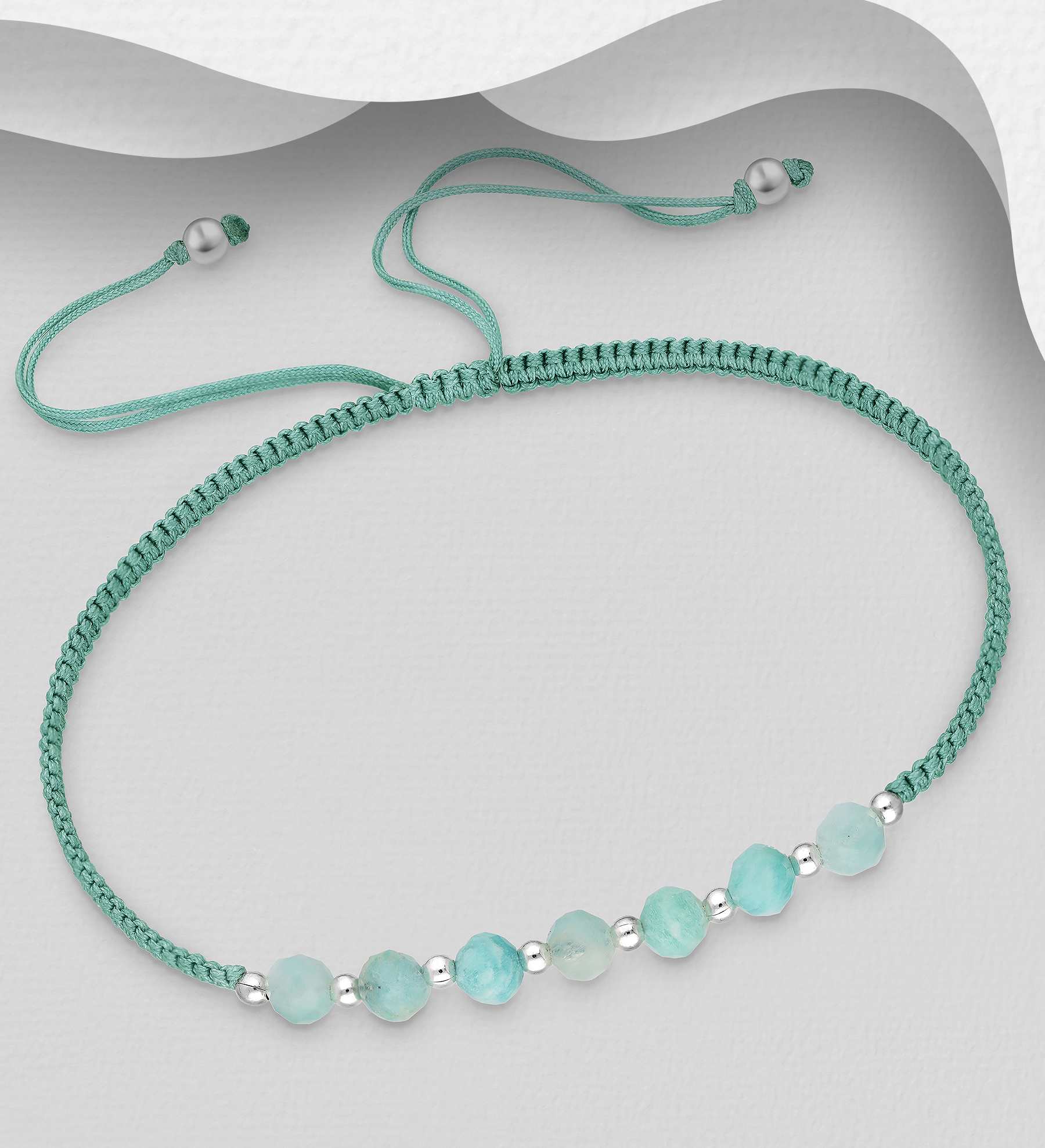 • srebro 925 (92,5% srebro), amazonit i konac.