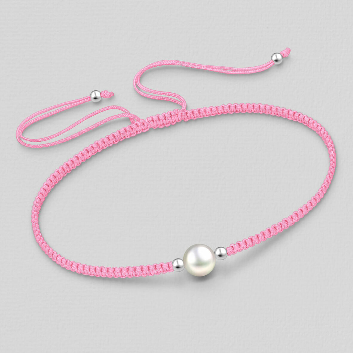Pletena narukvica sa perlicama srebra i slatkovodnim biserom