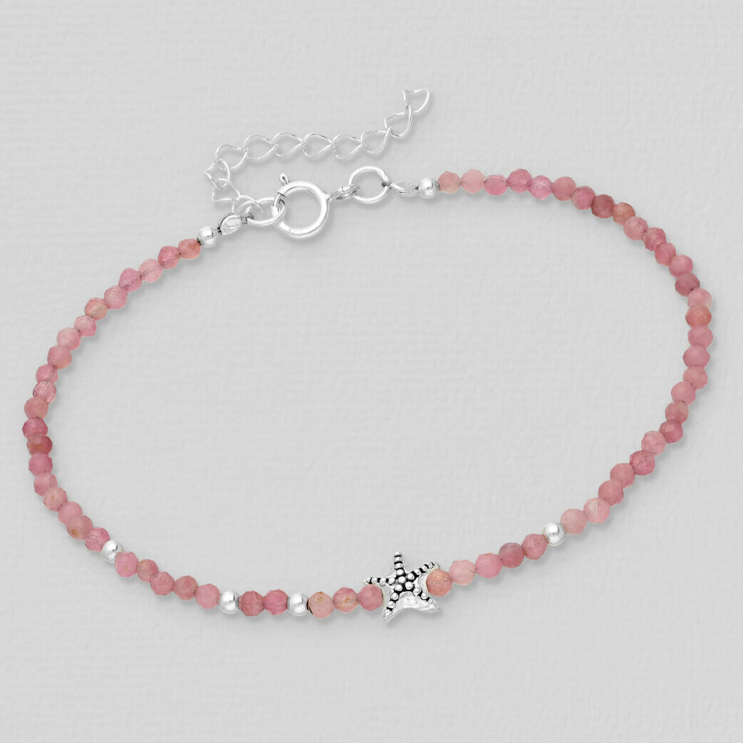 Srebrna narukvica morska zvijezda sa perlicama srebra i Pink Turmalina