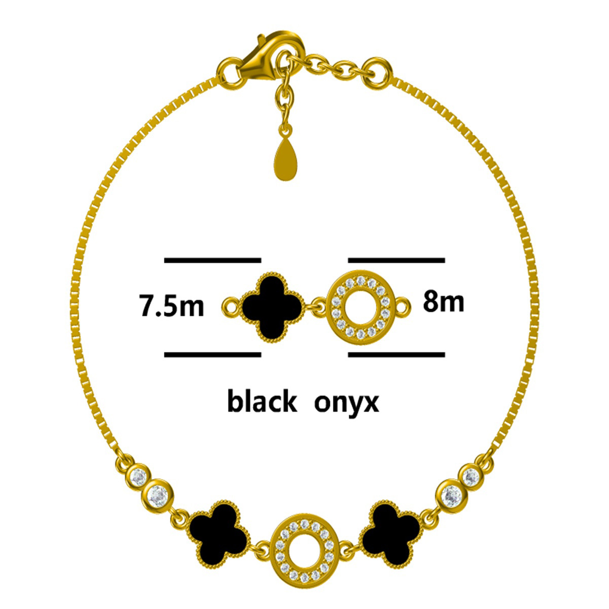 Srebrna narukvica sa pozlatom ukrašena cirkonima i crnim oniksom
