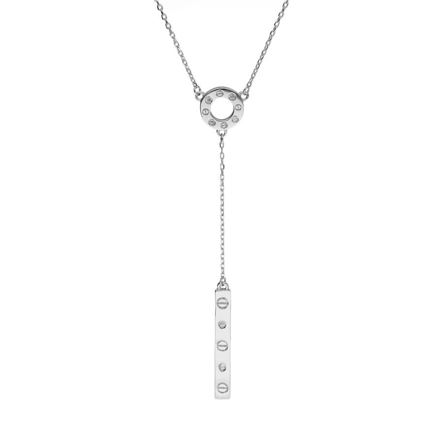 Ogrlica je rodinirana i ukrašena cirkonima. Rodij štiti nakit od tamnjenja i daje dodatni sjaj