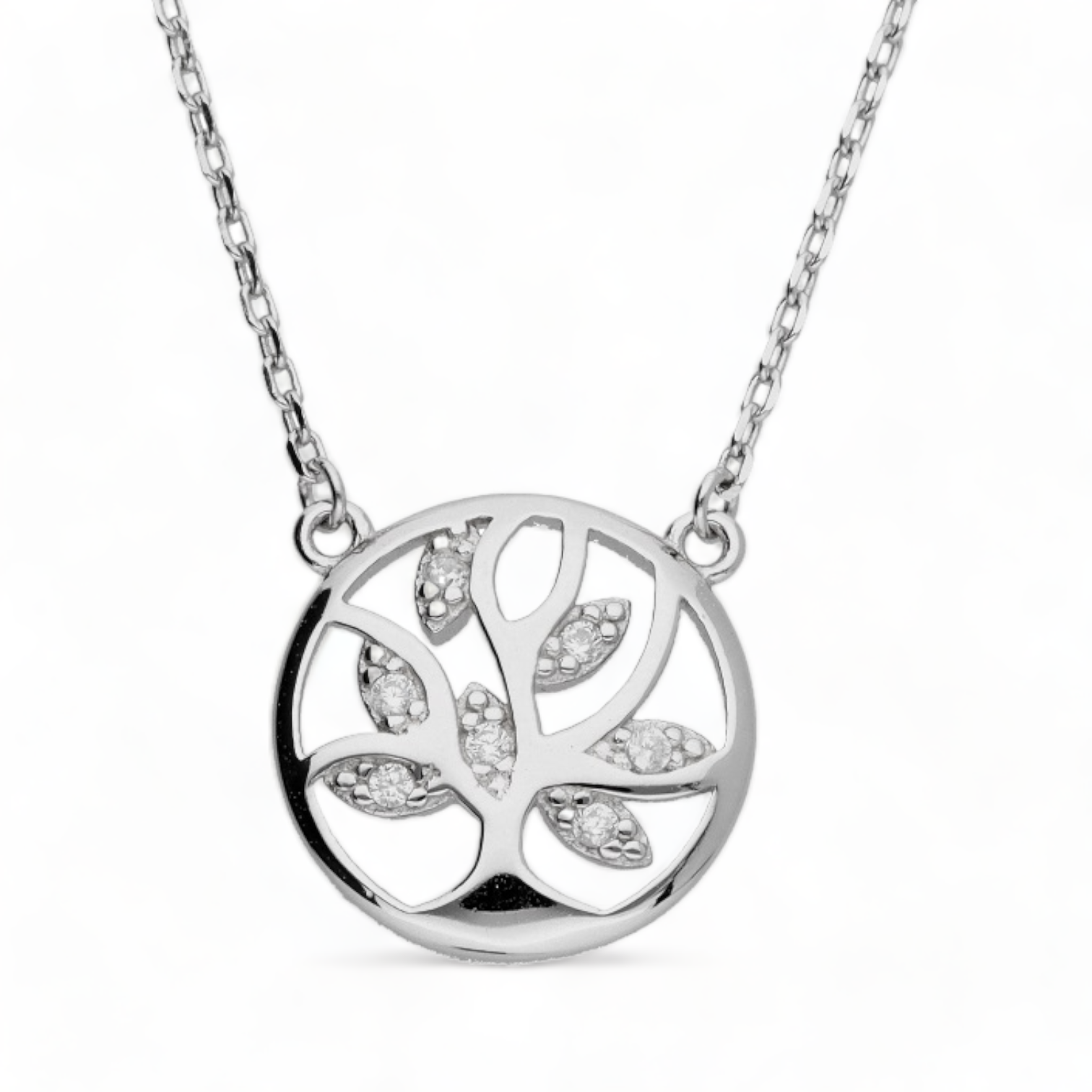 Ogrlica je presvučena tankim slojem rodija (rodinirana) radi zaštite od tamnjenja i ljepšeg sjaja i ukrašena cirkonima