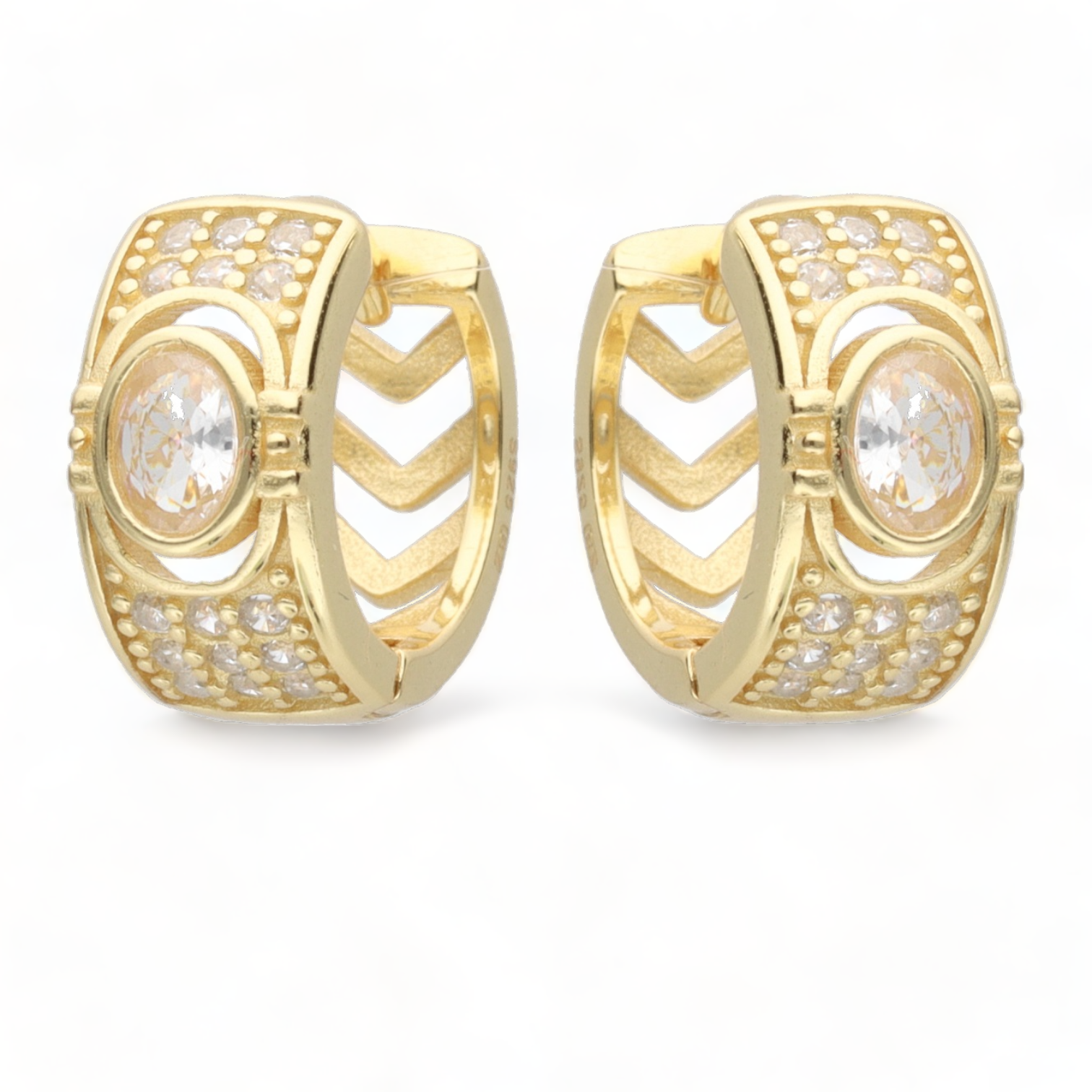 Naušnice su pozlaćene 18 karatnim zlatom i ukrašene cirkonima.