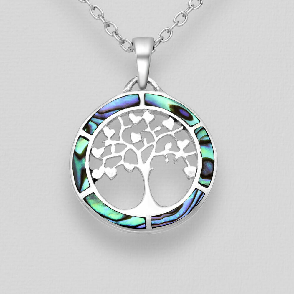Srebrni privjesak drvo života, ukrašeno sa školjkom