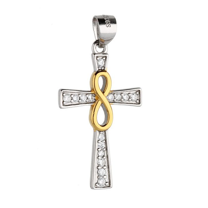 Srebrni privjesak križ sa znakom beskonačnosti – infinity koji je pozlaćen